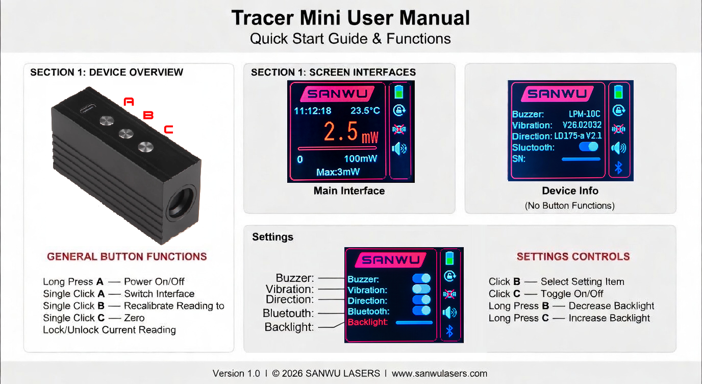 Tracer Mini 10W Laser Power Meters - Sanwu Lasers